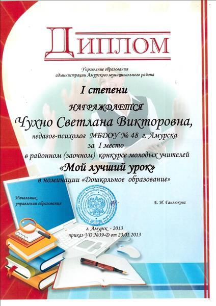 Диплом I степени в районном конкурсе "Мой лучший урок"