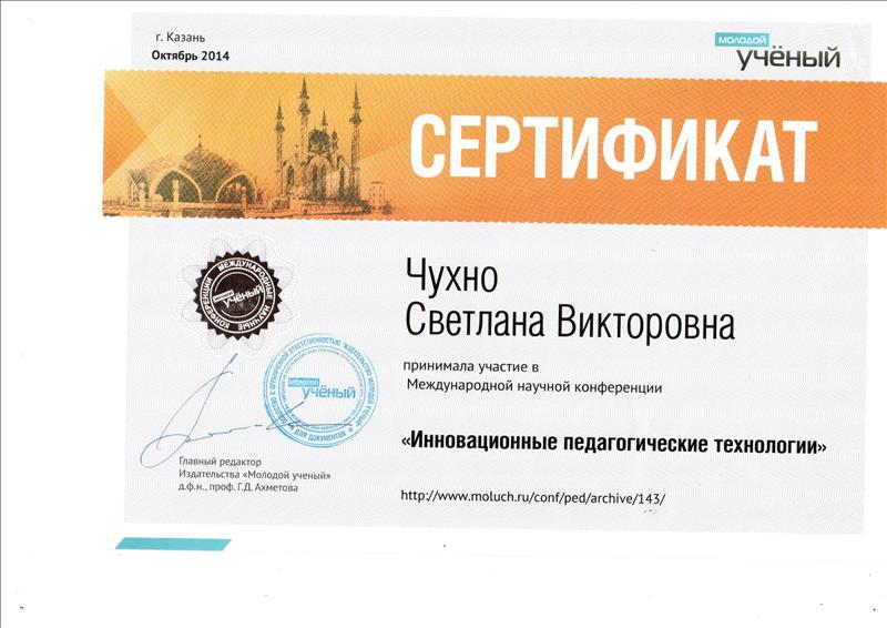 Сертификат участника в международной научной конференции "Инновационные педагогические технологии"