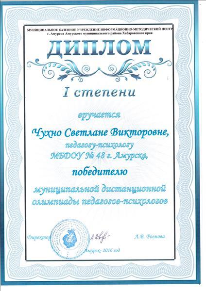 Диплом I степени Муниципальная дистанционная олимпиада